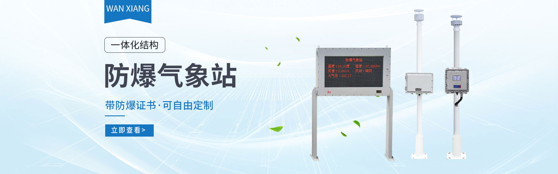 山東萬象環(huán)境科技有限公司官網(wǎng)主要產(chǎn)品有防爆氣象站,校園氣象站,農(nóng)業(yè)氣象站,負氧離子監(jiān)測站,超聲波氣象站,歡迎咨詢13276362033!